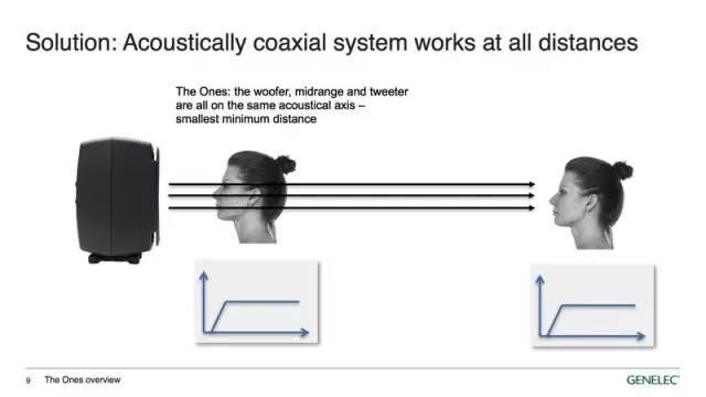 Aki:「同軸設計到底解決了什麼問題?通俗來說,比起傳統非同軸設計,聽音者即便在上下左右任意方向上偏離音箱主軸,也能得到相對一致、良好、無畸變的頻率響應。畢竟,我們在錄音混音時,頭部不可能從始至終都保持在一個位置點上。」
