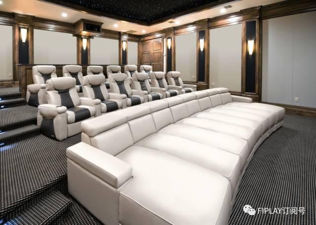 在影院设计过程中,设计师使用了多种手法测量。观影席的布置并不是整齐一字,相反采用了弧形布局,让每一个角度的观看都能实现最大化的视觉效果。视觉方面,为了避免白色沙发的反光效果,设计师在工程最后使用了低增益的屏幕,令画面有着更好的胶片味,另外再使用色谱分析仪进行色彩校准,令画面色彩表现亦同样精准。