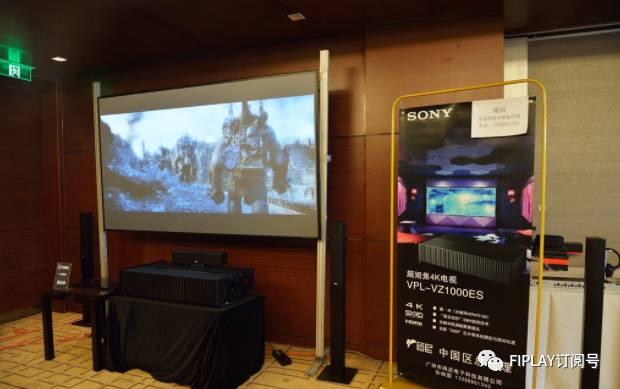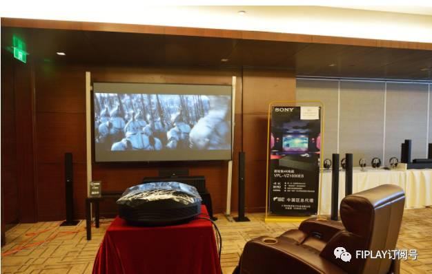 本次展示活动在酒店布置了二个大型展厅,外侧的展室多数产品做静态展款,而Teufel音箱一套小型影院系统,配合Sony HW-48、优视加播放器和谛凡喏 D-BOX座椅,展出了一套小型的客厅影院组合。
