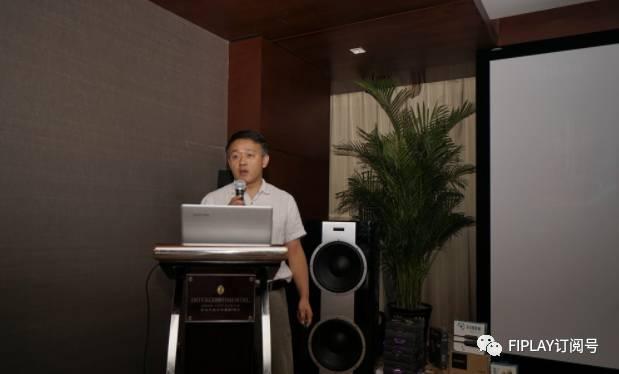 广州隽丰影音总经理赵扬向大家展示了这块180寸透声幕布的特点,这一款来自意大利的SCREENLINE是采用了0.4MM微孔的透声技术,不光是有较好的透声效果,而且对于投射光的反射也有极小的光损耗。Sony VW-1100在这块幕布上的投出的画质效果非常鲜活,通透,饱满,而且在幕布后面的三只Teufel主音箱的声音也有非常好的穿透力!大家充分感受到这块幕布兼顾透声和优视加总经理纪光介绍自家产品时,对优视加的旗舰播放器的性价比充满了自信,U6这款产品在支持4K超高清、产品技术特性讲解。