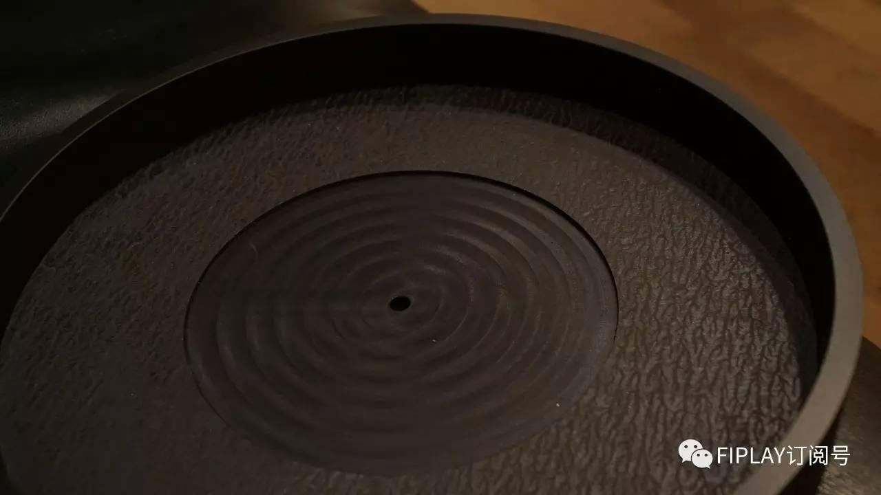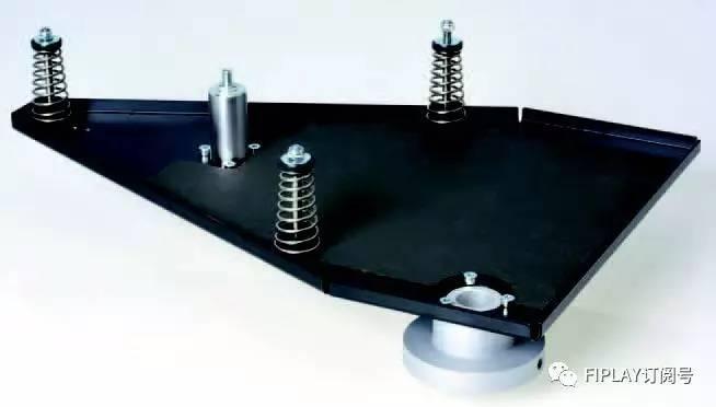 黑色的鋁盤之下正是由一個同樣分量十足的精工鋁合金所打造的轉盤承載着,而通過皮帶傳動來驅動這個重轉盤的馬達,則採用三相驅動的形式,並且精妙之處在於,這個三相驅動馬達並沒有直接緊貼於黑膠唱盤基座,而是通過減震能力優秀的特製橡膠,去緊固一塊金屬件,令到這一塊金屬件實現懸掛式處理,然後電動馬達便安置於這一塊通過合理避震的懸掛式金屬件中,這就極大地減少了由於電動馬達產生的振動與頻率噪音,對唱臂拾取到的聲音細節以及整體背景寧靜度,都將會提高不少。