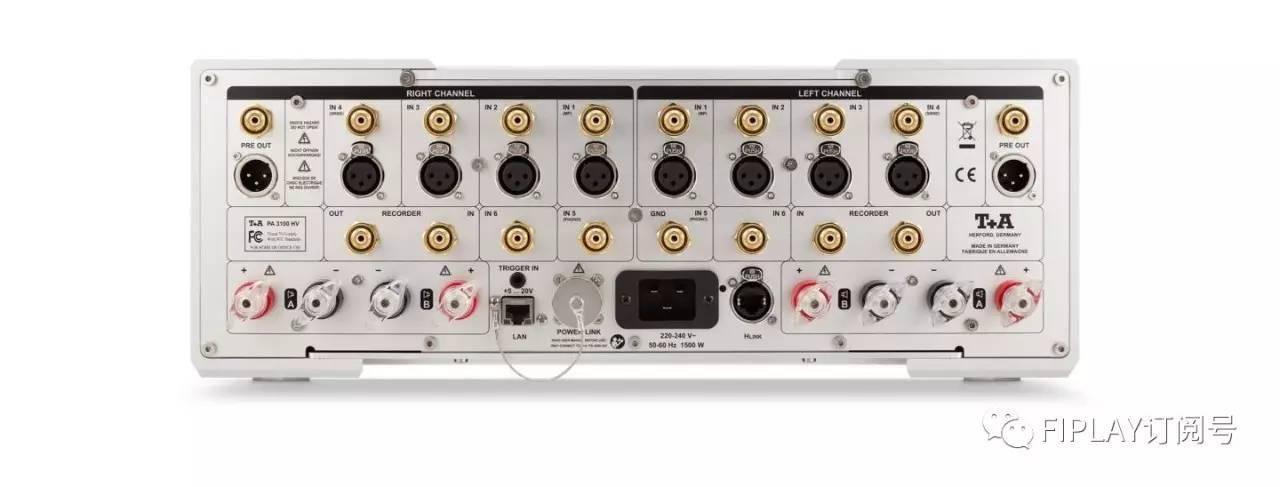 这次接触到的PA 3100 HV合并式放大器隶属于厂家的HV系列,同时也是T+A的高端产品。什么是“HV”?就是“High Voltage”(高电压)的意思。这个系列在2013年问世,主要特点如下:一、无论是放大器还是播放机,其放大级每声道均施加高达500V的高电压,较传统设计其放大特性更为线性;二、同时融合了厂家近30年在晶体管放大器和电子管放大器方面的成熟经验;三、全系列产品为全独立电路设计,双单声道结构,不使用任何运算放大器;四,产品的机体均由纯铝材料制成,无任何磁性部件,内部的隔板也是由10mm厚的铝板材制成。由此可见,“HV”这一系列无论是在电路设计还是基础用料上都是顶尖作品。