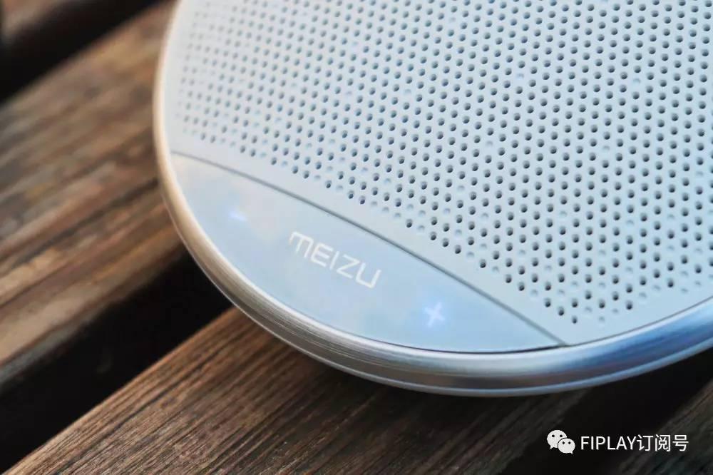 相信如果不说,你都仍然认为面板上也只有“音量+”和“音量-”两个按钮,其实中间的 MEIZU 也是可以按动的,是一个多功能的主键,既可以充当暂停播放按钮,也可以长按蓝牙重新配对,两枚音量按钮还可以通过颜色的变化来充当电量或者功能的指示灯功能。