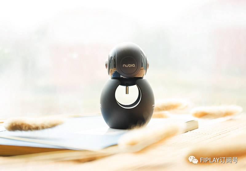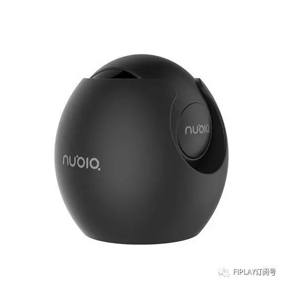 机身正面背面均为一个微微突出的摄像头,而其镜头会随着机身的转动而发生转动。而机身的左右侧则为该全景相机的logo和相关信息。此外,在球形的机身上还有着一些弧线轮廓,在其的搭配下,努比亚全景相机显得非常有时尚感、科技感。