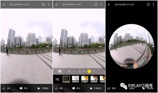 拍照界面UI与常规相机功能差别不大,而要说差别呢,应该就属于屏幕上的滑动了:基于全景相机,单指滑动屏幕等于转动屏幕显示视角;双指滑动就是调整画面显示大小。