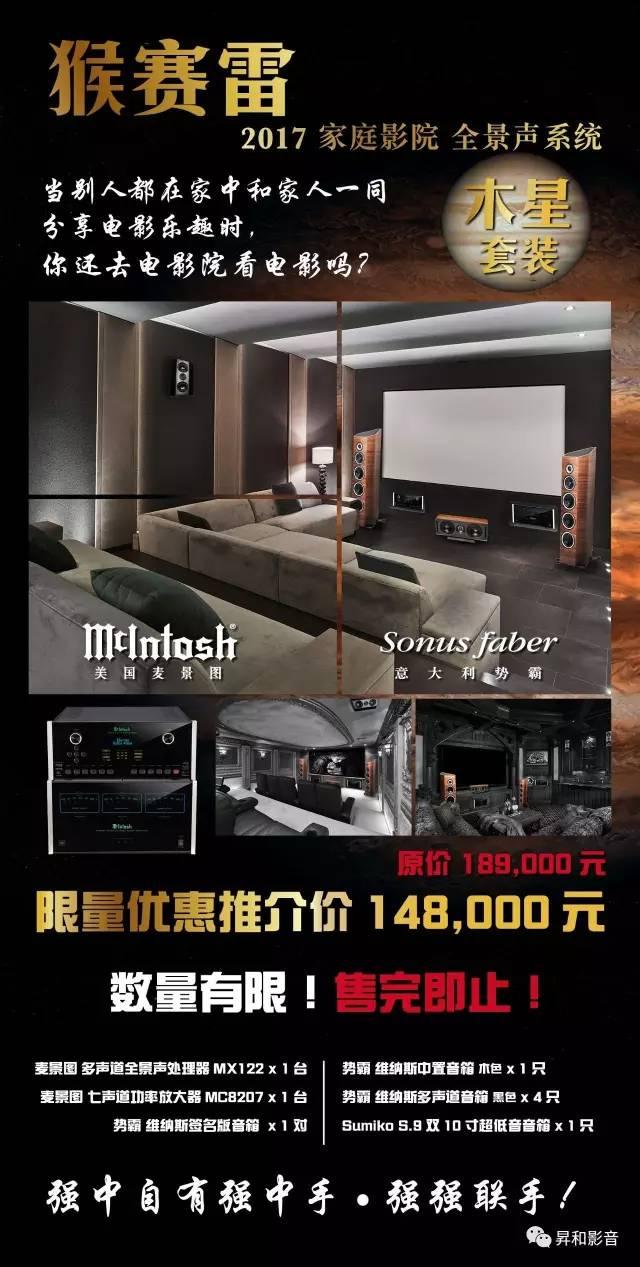 「麥景圖」的多聲道全景聲處理器MX122自帶高規格解碼搭配MC8207七聲道功率放大器,絕對算得上是「與時俱進’的積極代表,加上「勢霸」意大利全手工製造的維納斯簽名版落地式音箱1對,作為家庭影院5.1.2聲道其中一員(主箱+中置+環繞+超低音音箱),這樣強強聯手的組合絕對是家庭影院中的皇牌產品。現以限量優惠推廣價148,000元/套,便可享受到細緻無損,環繞感強烈,並具有空間感的3D音效和臨場效果。無論是愛看電影的你,還是愛聽音樂的妳,它都能滿足您的需要,您值得擁有!