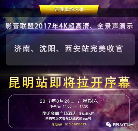 由菲伯爾FIBBR等六家單位舉辦的「影音聯盟2017年中國六城市4K超高清、全景聲巡展」即將到達昆明站!