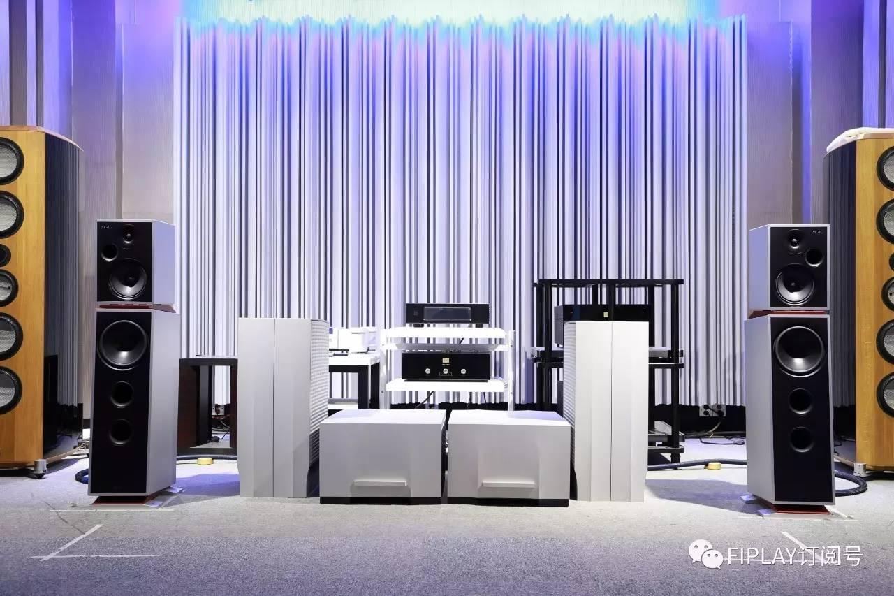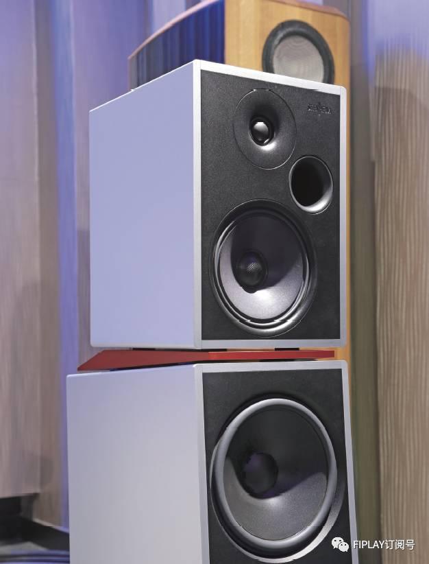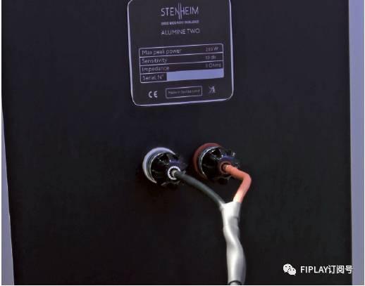 高音单元方面,ALUMINE3 WAY为1只1英寸的纤维振膜单元,而一旁还有一个反射孔,反射孔直径约为2英寸,靠近箱体的外侧。负责人表示在设置对箱时,要注意这一个问题,厂家也建议反射孔靠外两侧摆放,这样声音表现能达到音场更宽广的地步;中音部分采用了与高单元所不同的6.5英寸的纤维振膜,不但质轻且密度甚高,中音单元圆心位置还有一个1.75英寸的高韧性碳纤维防尘帽(这个是为了保证其整个单元震动部分尽可能的轻盈而获得更高的效率)。而低音单元方面则为一个定制口径为8英寸的聚丙烯单元,下部亦采用双反射孔式设计。喇叭接线柱端子为WBT高级制品,总重量单只ALUMINE 3 WAY扬声器就达到74kg!由于所有的反射孔设计都位于前障板上,因此在摆放上不会太受空间和近墙所限制。