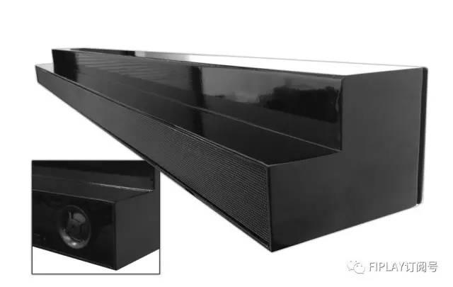 然而你仔细看它的低音单元全部安置在顶面上或者底面上,James通过在深度上做文章,在正面看起来无比纤细的Soundbar却有着极其深层的低音表现!
