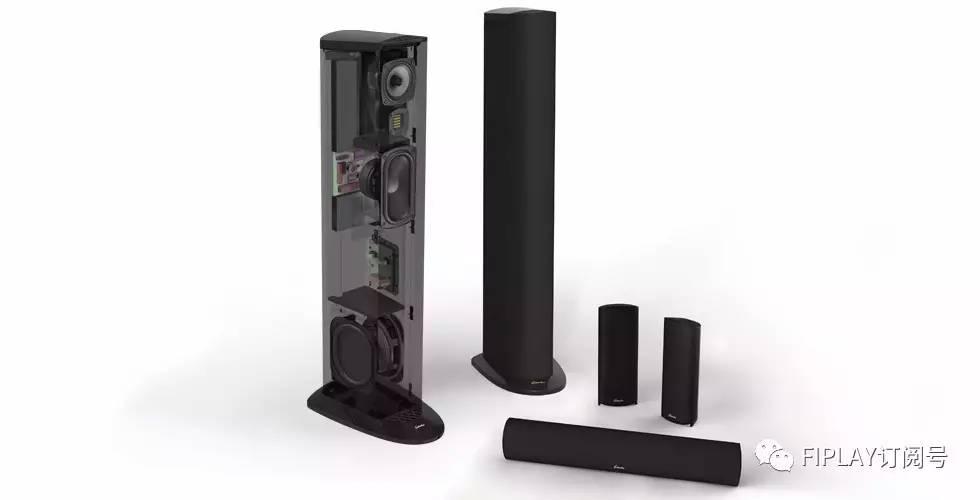 大眾對多聲道家庭影院中的5.1、7.1中的「.1」的定義自然是低音炮的個數,但GoldenEar卻表示「無需再單獨購買一隻低音炮產品」。原因自然就需要了解它們推出的GoldenEar Triton Three+揚聲器:設計非常獨特的這款揚聲器,採用的是半主動式的結構。GoldenEar Triton Three+與普通的揚聲器相比,除了有一般的接線柱外,還會有一個額外的RCA訊號輸入端子,以及一個電源插口和音量調節旋扭。而實際工作中,外置的功率放大器通過線材連接到Triton Three+時,驅動的僅僅是揚聲器的上半部分,也就是中高音單元。而通過RCA輸入端子輸入的訊號,則是經過DSP芯片處理,並通過高達800W的D類放大技術輸出至下半部分,則是低音單元和被動輻射器。按照這種方式分別將兩種訊號分別輸出和放大,也就是無需再額外追加一隻新的低音炮。特別是在如今高房間、面積較小的都市公寓住宅的空間中,以客廳居多的視聽環境中再額外放多一隻四四方方的低音炮,除了顯得與整個室內裝飾格格不入的風格外,還會佔用更多的地方。另外,如果在設備的輸出中擁有更多的輸出訊號端子,就可以分別接入至作為主聲道的兩個Triton Three+中,成為一套2.2的立體聲系統,獲得更好的低音效果以及爆發力。