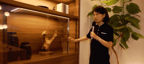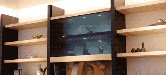 电视还未开启之前,它就是一块普通的滑动玻璃柜门,我们可以清楚地看到里面陈列的物品。