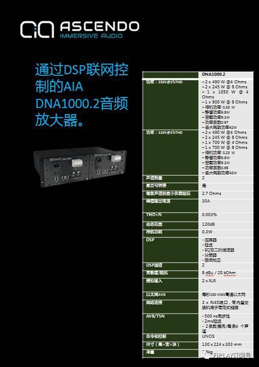 通过DSP联网控制的AIA DNA1000.2音频放大器