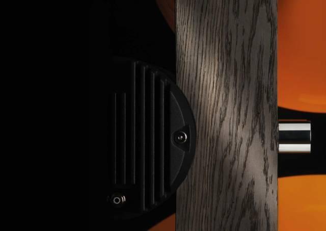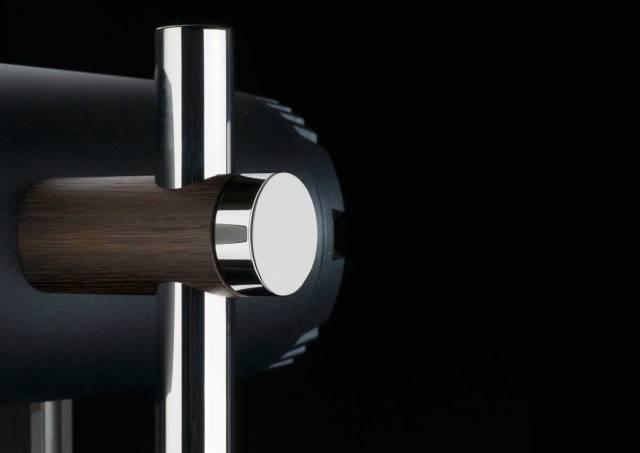 所有的实木部分都采用了橡木,德国土生土长。橡树,树中之王,也是很多国家的国树,象征着力量和耐力。从中世纪开始,橡木就被使用于制造奢华家具和顶级建筑的内镶板,比如著名的伦敦英国下议院辩论室。拥有数百年历史的古老工艺——烟熏橡木,经久耐用、质地光滑。在Trio 26周年限量版上,橡木精美的纹理浮现在烟熏出的暗色背景上,与鲜明的不锈钢框架、艳丽的号角形成了极具美学的视觉反差。