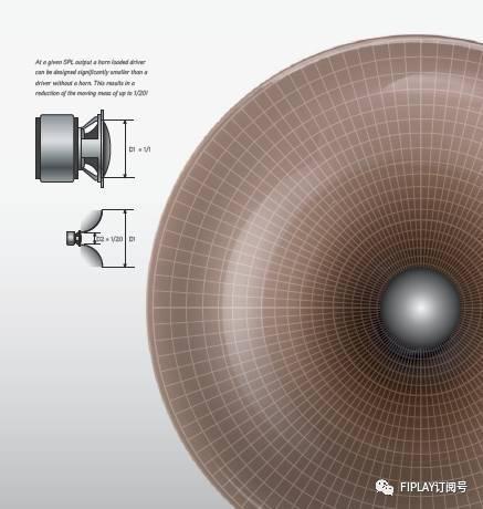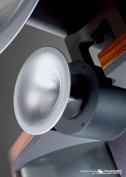 DUO MEZZO XD最顯眼的是位於頂部、通過金屬支架與下方超低音箱體連接起來的號角中音單元,號角直徑達到670mm,長度達到370mm,由ABS工程塑料壓鑄而成,表面上可選擇光面或磨砂面,更有各種各樣漂亮的顏色供選擇。在號角單元的驅動器環節,則是一隻振膜直徑170mm的鋁鎳鈷合金磁體中音單元,振膜材料是全新的Soft Mesh軟質纖維網格;此外還採用了特殊的Omega音圈,阻抗提高到少見的18Ω,以實現更好的控制力;音圈的運動由振膜前後方的對稱磁體控制,並且採取了更多的減重散熱措施,大大提高了單元的響應速度。同時還採用了專利的CDC(Controlled Dispersion Characteristic,可控擴散特性)技術進行機械式分頻,在中音單元振膜與號角喉部加了一個稱為「空氣室」的緩衝空間,以產生類似「帶通濾波」的效果,實現各頻段有序地進行衰減,從而無需藉助分頻網絡,這樣一來就大大減少了系統組件,以保證聲音的純凈。