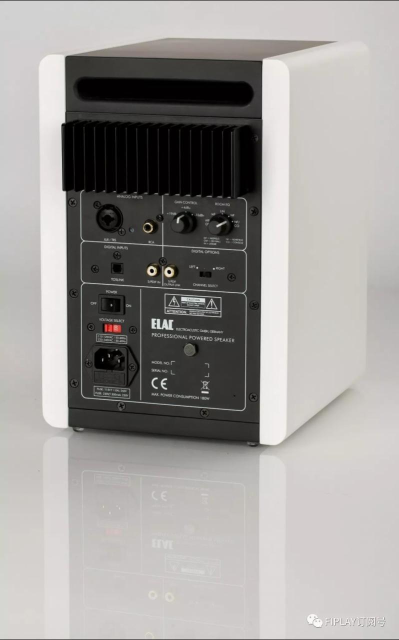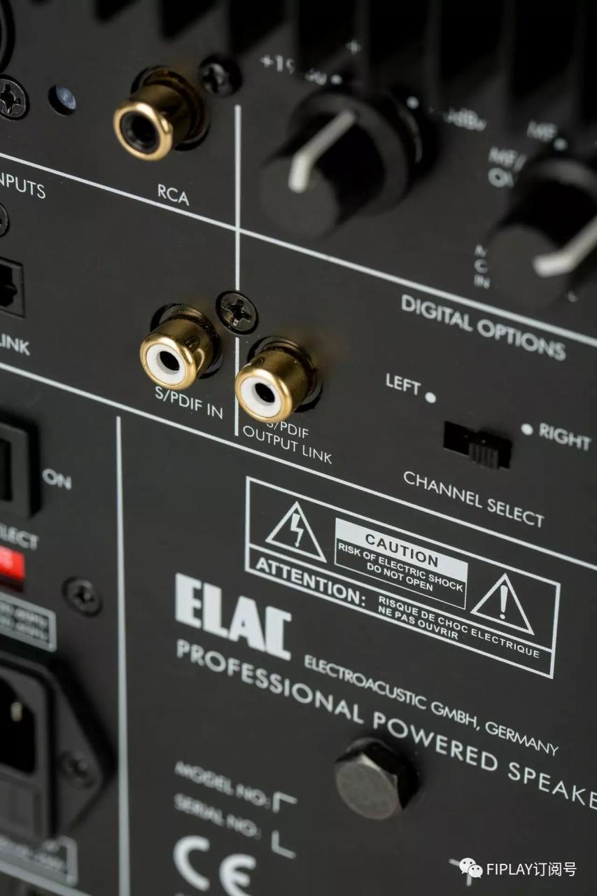 作為有源,指示燈是必備的,當電源打開後,前面板單元底部的藍色指示燈會亮起。背面在模擬接口輸入上除了使用高檔的NEUTRIK XLR(6.3mm TRS,供專業和准專業人員使用)外,還具備了RCA接入,同時還具備數字輸入,Toslink(光纖)和S/PDIF(同軸),兩個數字接入可以實現24bit/192kHz的解碼,而一旁的數字輸出則為另一隻AM 200實現並聯,並要確定左右聲道。相反如果AM 200對箱是輸入模擬訊號,則兩隻可以進行對立使用則不需要並聯。AM 200的數字接入可以為各類流媒體設備(ELAC Discovery音樂服務器、SONOS、Apple TV、Apple Airport Express等)以及筆記本等完美搭配,無需再接駁功放,讓音樂生活更加簡單隨心。