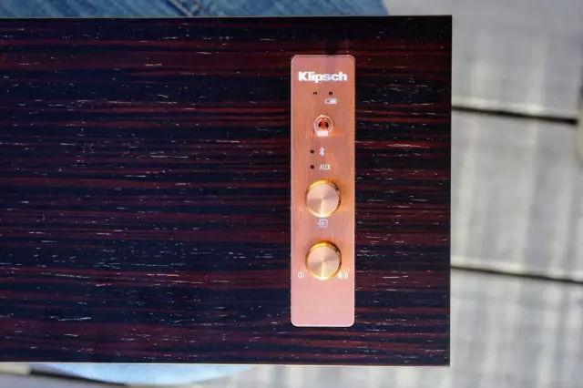 依循着Heritage系列一贯的风格,Klipsch The One音箱的箱体是由中密度板制成,顶部和底部的面板是由坚固的木头制成的。其余四个面板覆盖着黑色的尼龙透声布。古铜色的金属饰板上有两个旋钮(声源选择和音量调节)和一个电源开关,这些按钮都是由金属制成的,被安装在音箱顶部的面板上。Klipsch The One音箱那英俊的外表昭示了它在商业市场上将会十分受欢迎。