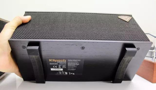 位于音箱核心位置的是一款非常独特的音频组件。Klipsch为这款小音箱配备了两个独创的全频单元(2.25”),与之搭配的是一个4.5”的低音单元。音箱的放大器能带来30w的额定功率,峰值可达到50W。Klipsch The One最高能产生103db的声压级(距离为1米),大约在56Hz到20Hz之间。