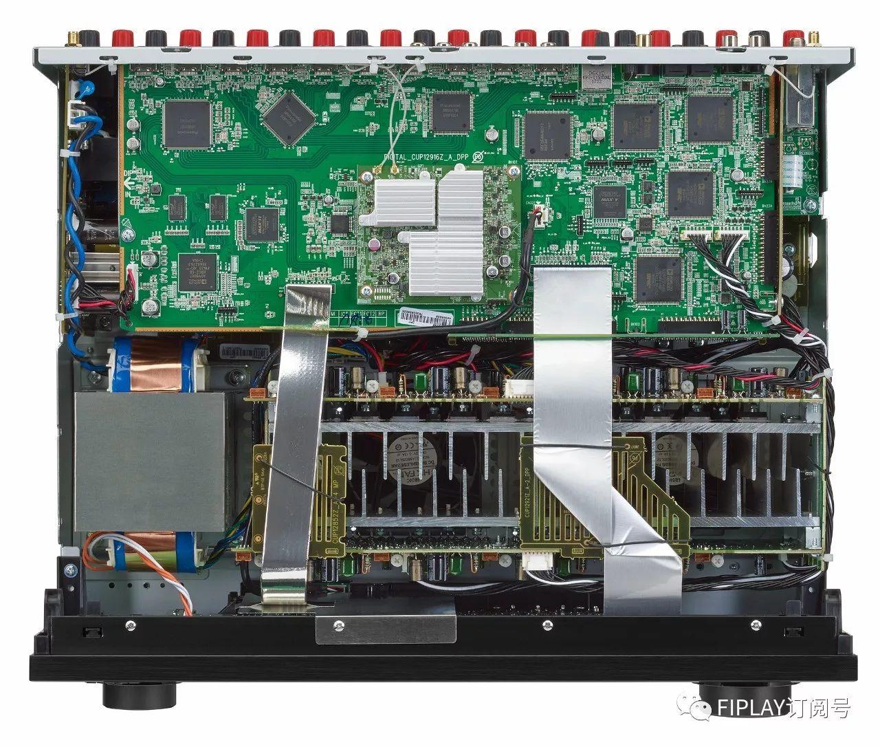 采用了分离式前级放大部分进行音量控制和输入选择,以确保信号纯净,而高速数字电源可剔除可听频段的任何噪音。接收机还采用了高刚性底盘,并用一块分离板支撑变压器,改善了机械接地以消除振动。