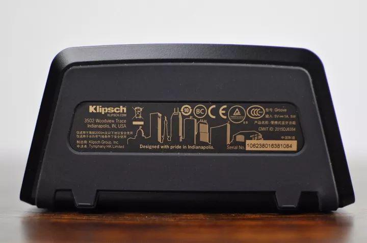 虽然这机器简单,但是讲究还比较多,底部机身铭牌也有学问,除了随身编码、等常规禁忌,各位可看到了正中的城市剪影,这是因为杰士Groove是由杰士全球总部印第安纳波利斯研发,所以在每一款音箱底部都印上了印第安纳波利斯城市轮廓和“印第安纳波利斯荣誉设计”的字样,是不是觉得很正式?