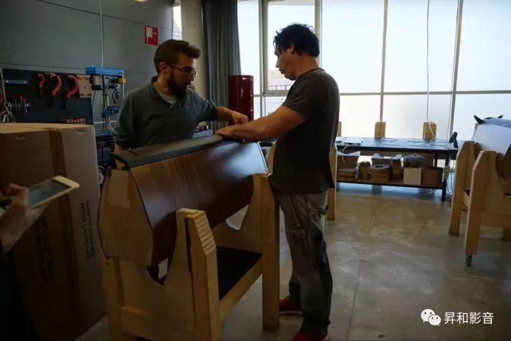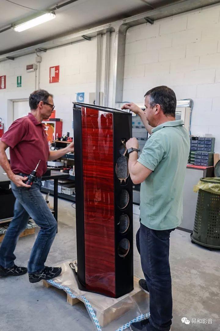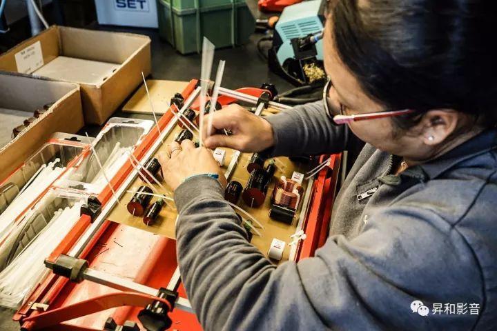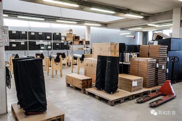 离开试音室后,一行众人参观了「势霸」音箱的组装厂房。世界上造价昂贵,出名的音箱品牌有很多,但是,不是每一家都能那么坦然让人进去参观。厂房就在总部大楼,这里进行的是「势霸」音箱的总装阶段,创意、设计、研发和箱体厂都在其他地方完成。厂房很大,应该有超过半个足球场的面积