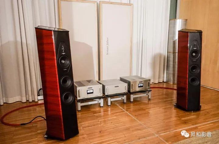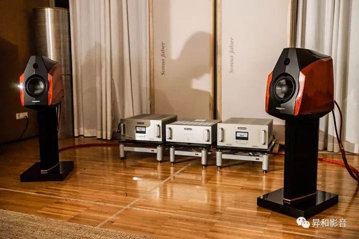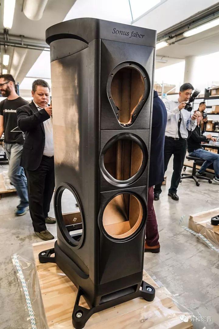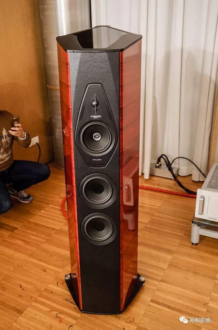 这款吸引那么多人的拍照的就是「势霸」大名鼎鼎、江湖上如雷贯耳The Sonus faber se“凤凰特别版”旗舰级音箱,它集合了Sonus faber最顶尖的音响技术和制造工艺,体积庞大,重量达到610kg/对。“凤凰特别版”音箱如乐器弧线型的箱体由多层薄夹板压合加工而成,箱体的外饰面前后面板为小牛皮包裹的工艺。配合由整个铝块制造的底座及顶部,“凤凰特别版”的内部底座上还安装有一块调音用的圆型合金稳定块,以一根合金竿和顶板连接顶合,能让箱体的震动进一步有效降低。