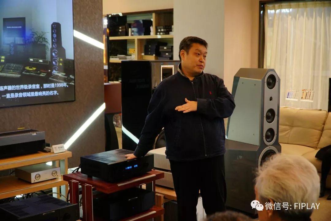 现场,王总为现场影音爱好者介绍BAT功放的特点