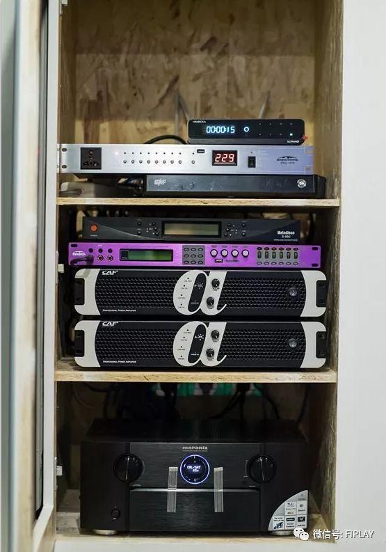 功放部分馬蘭士的SR7100功放一台,採用了為海美迪H10四代作為播放器。此外,還有卡拉OK的控制設備也同樣在同一個影音房裡,讓這個影音室的用途更加多樣化。