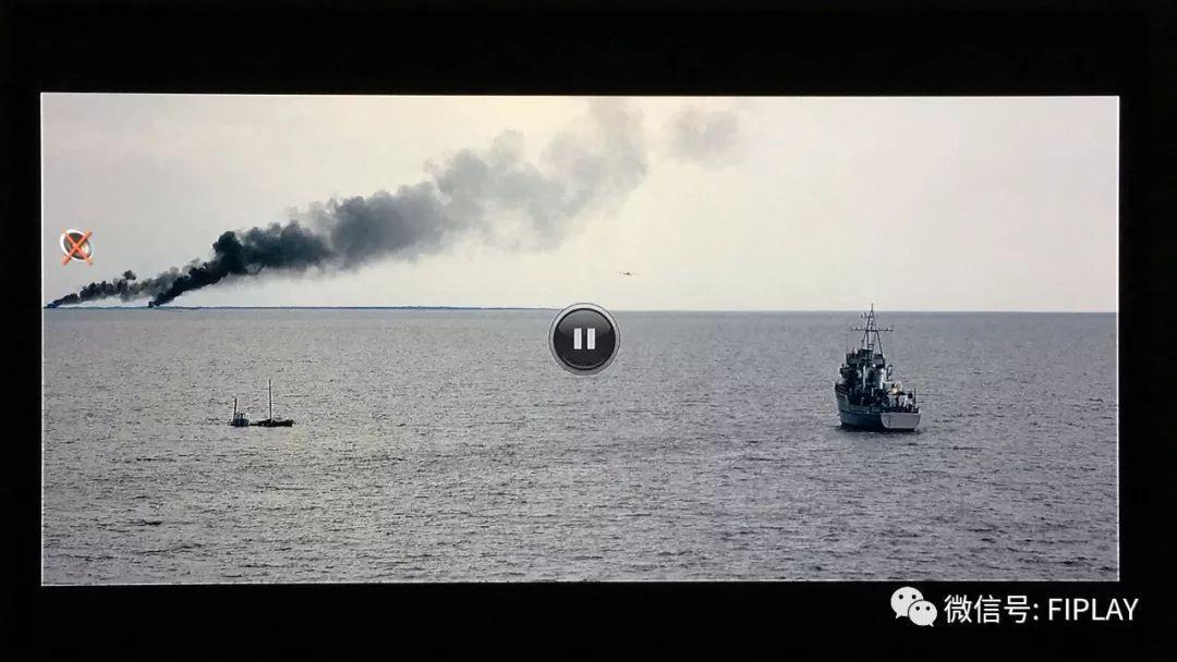 大海的粼粼波纹很清晰,远处的硝烟展现一种层次感