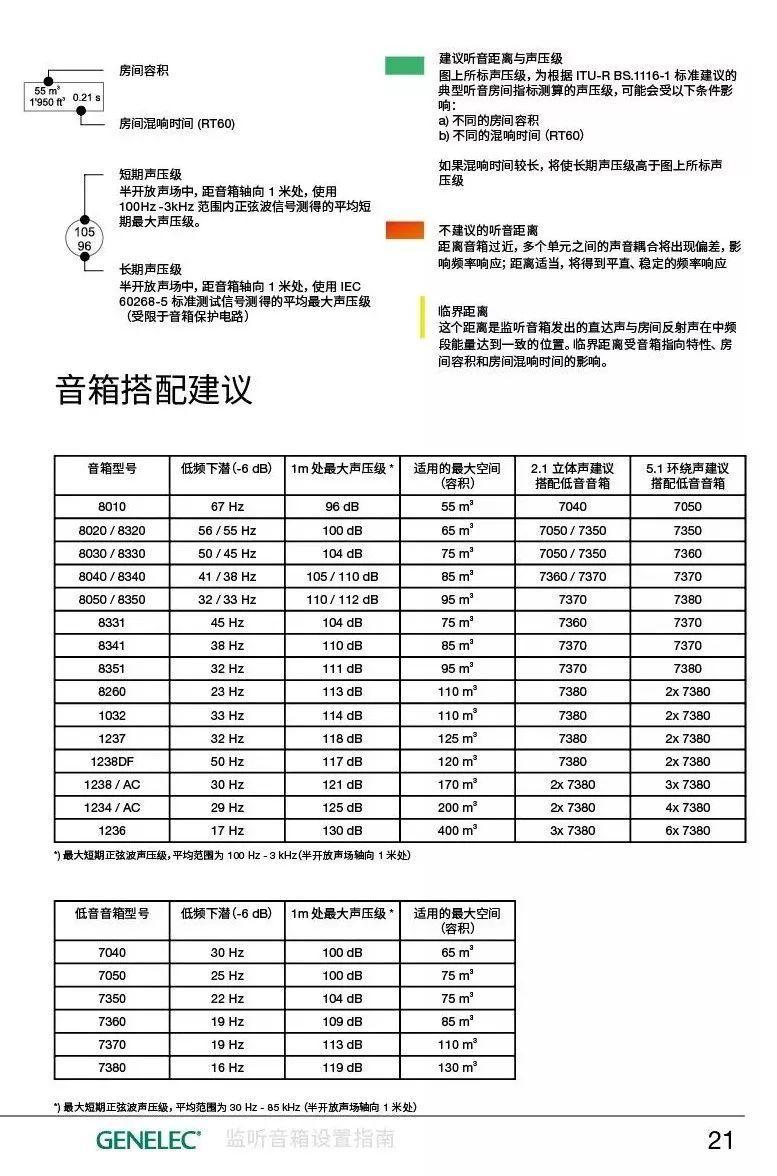 真力建议您通过听音距离和监听声压级来选择合适的监听音箱。选择低音音箱时,要与主音箱相互匹配。假如您需要更详细的参考,可以使用我们提供的线上选择工具,或咨询真力中国及当地经销商。下面的内容将帮助您确定听音距离和理想听音区域。