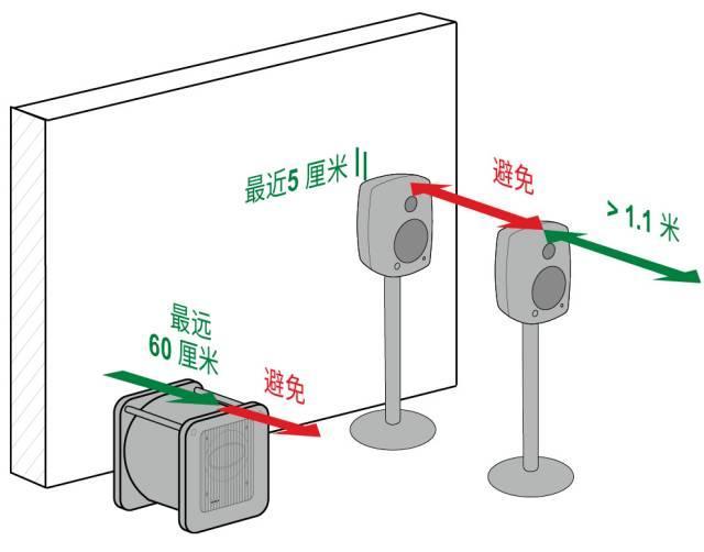 摆放音箱时,应避免墙面、天花板或者地面的反射声到达听音区域,对直达声造成干扰。