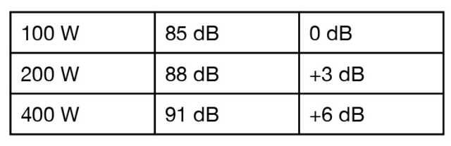 功率增加一倍时音量增加 3 dB。