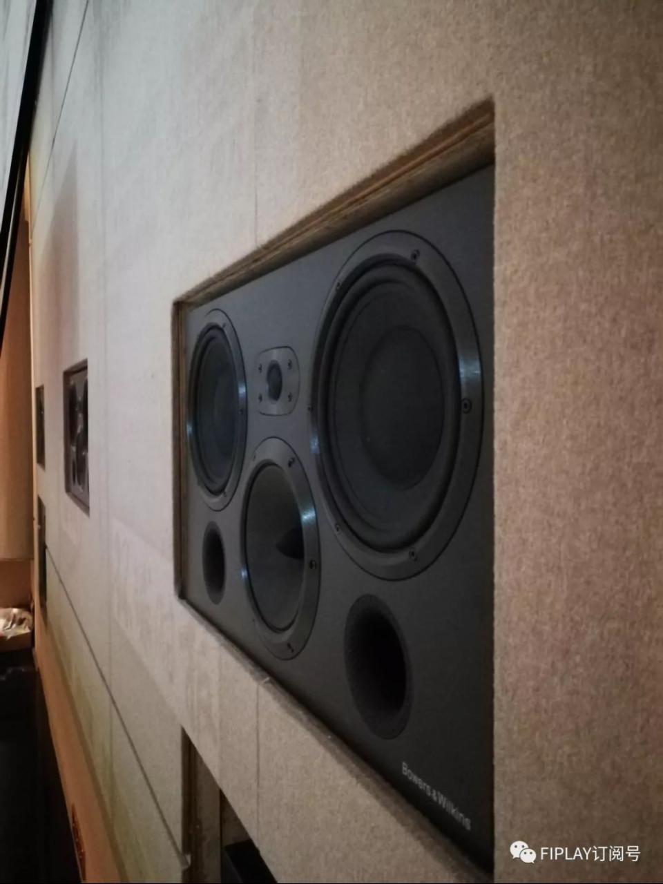 B&W CT700系列中的CT 7.3定製揚聲器,在此作為幕後前置揚聲器使用