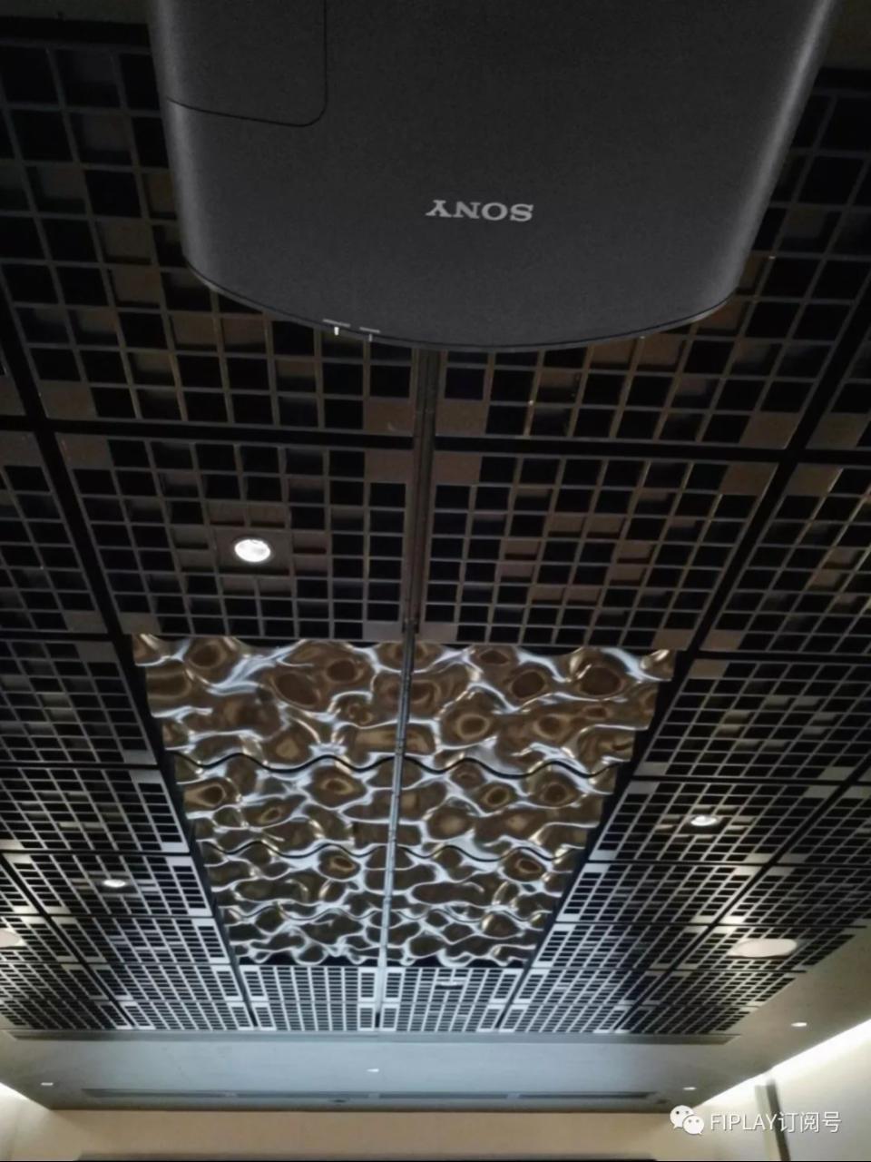 由於賈先生希望在試音室中設置4K投影,因此在屏幕方面自然選擇具備大屏的觀影效果,同時為了滿足屏幕後的入牆揚聲器需求,於是經設計師的嚴選,最後選擇了160英寸最佳的透聲幕布。為了保證獲得更好的室內觀影效果,在天花頂部設置了全黑的防反射式塗料,對天花進行恰當的噴塗,同時為了獲得最佳的聲學擴散表現,並設置聲學材料。而左右兩側牆壁則直接用到具備較強漫反射的聲學材料進行包裹。設計師針對賈先生的需求,設置了8席觀影沙發,保持適當的坐席空間感。由於為兩排式設計,為了防止前排遮擋,設計師為此而進行了觀影梯級的設計,但同時亦保持着上下觀影不需要俯視和仰視的情況。
