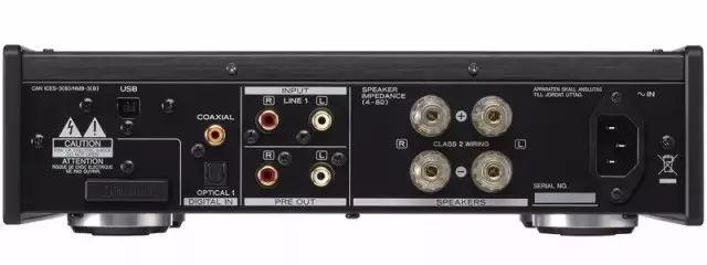 输出/入端子部分,AI-503具备USB、光纤、同轴、RCA类比输入/输出各一组。同时在前面板上亦设有一组类比/光纤混合输入和一组3.5mm耳机输出。