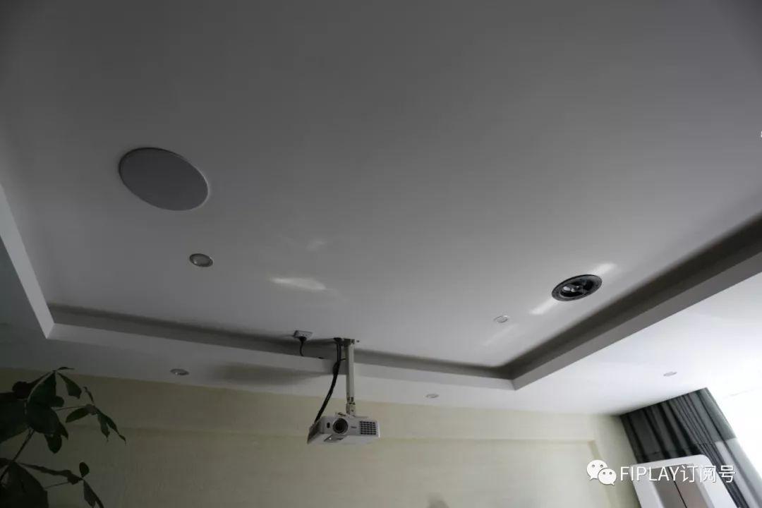 頂部天花環繞揚聲器,考慮到音色的統一,以及易於隱藏和最終的美觀性,並沒有選用Amphion的410製品,而是購買了來自美國定製安裝品牌新貴TDG Audio為Atmos音軌天空聲道特別設計的NFC系列製品的NFC-62:
