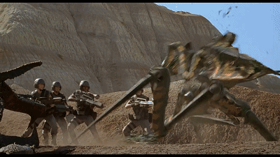 小编唯一拥有过VCD的电影。这部堪称无冕之王。在97年时投资超过一亿的大制作,也是银幕上最早的大规模CG战斗场面。超过300名的艺术家和技术员组成的VFX特效小组,打造出了极其逼真震撼的人虫战斗场面,其效果之精致放在今天丝毫不露破绽。而本片的特效也对之后的大片如《指环王》,《300勇士》,《天国王朝》产生了深远影响。