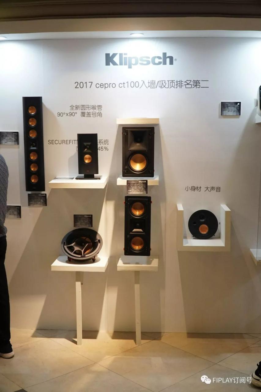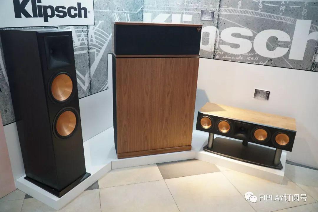 全新推出的RF-7 III(左)以及RC-64 III(右),位於中間的是Klipsch的號角王揚聲器