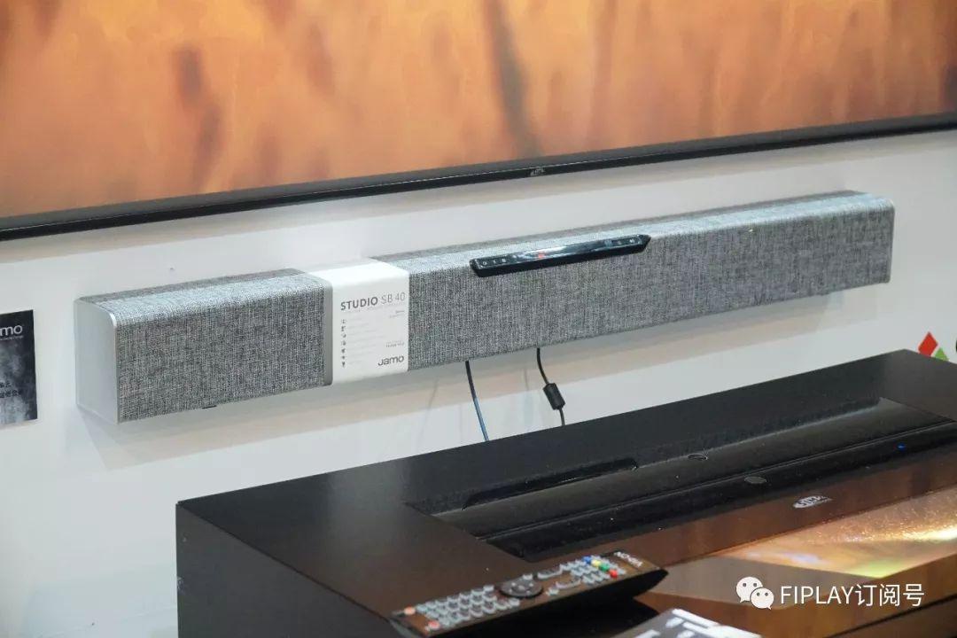 在展位正門處使用了SIM2激光電視配合 Jamo STUDIO SB 40 Soundbar