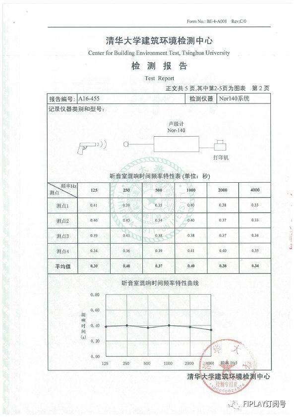 當然,國際互認資質的國家認證實驗室的檢測,報告必然是不能少的。附上關鍵指標混響時間的報告吧