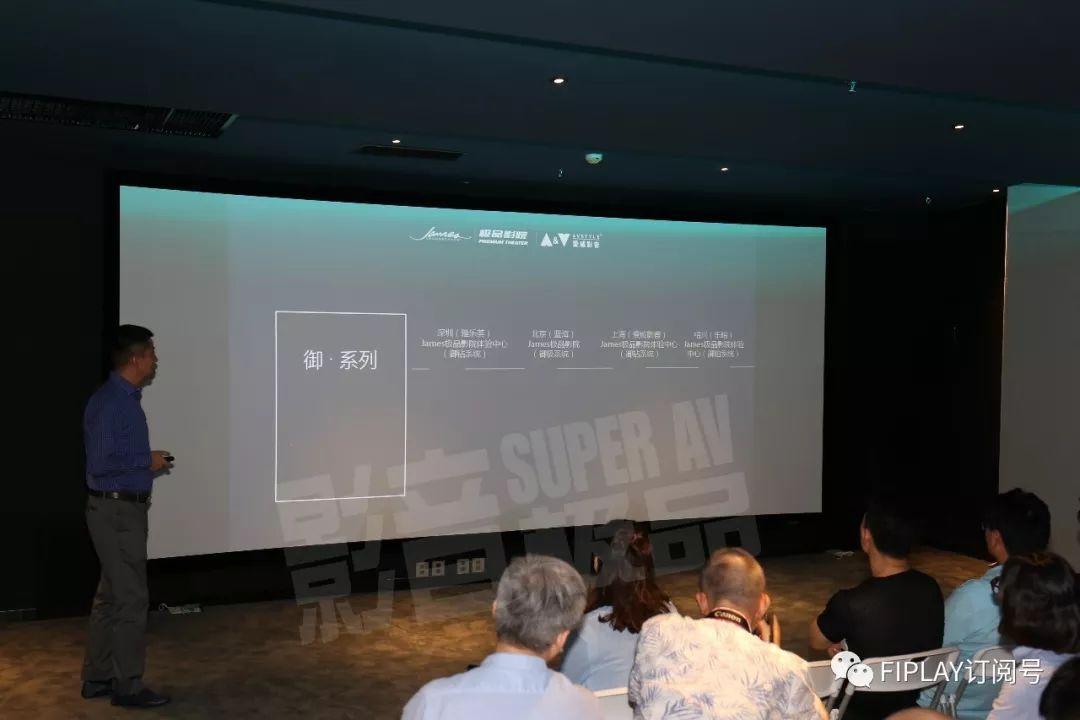 在一段精彩的片段演示後,接下來James品牌中國區總代理上海愛威影音總經理王育恆先生髮言。王總為我們分享了「James極品影院」的創立背景。在中國影音行業從「定製安裝」向「系統集成」業務轉型的過程中,消費者本來是有消費能力和對高標準音視頻效果的需求,他們渴望享受頂級影院帶來的極致體驗,但是由於一些缺乏公司實力,技術能力不足的行業新生力量通過惡意競爭,向消費者傳導了錯誤的高級影院標準。所以愛威影音聯合全球頂級定製安裝揚聲器品牌美國James公司,並得到了SIM2、SONY、Datasat、Marantz、Earthquake、Sensasound等在音視頻領域高端品牌的大力支持聯合推出「James極品影院」品牌,正是為了向消費者展示作為家庭影院領域奢侈品的標準,並讓消費者真正體驗到頂級影院所帶來震撼效果。所以今天這場活動不是一場尋常的高端器材演示活動,而是為中國影音行業樹立頂級私人影院的標杆。