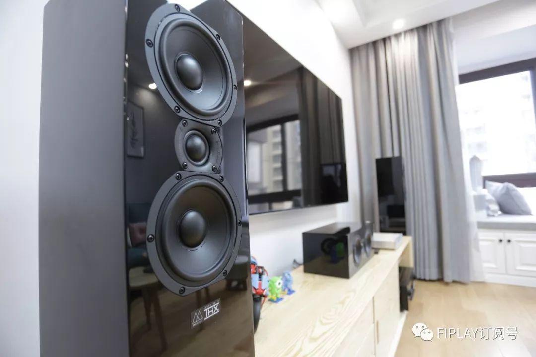 坐在沙發上大家能看到THX Select認證的TP800F作為主揚聲器,TP800F是一個2路密閉式落地揚聲器,高音單元採用特製的1.2英寸(30mm)丹麥設計單元。