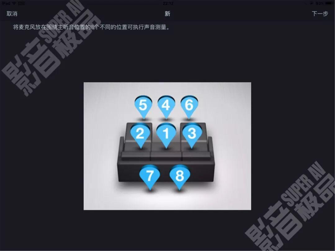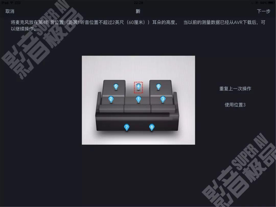 此时你的校正进行到中间,如果位置3是按照图示摆放的,那你可以先把麦克风放置到你的唯一位置,