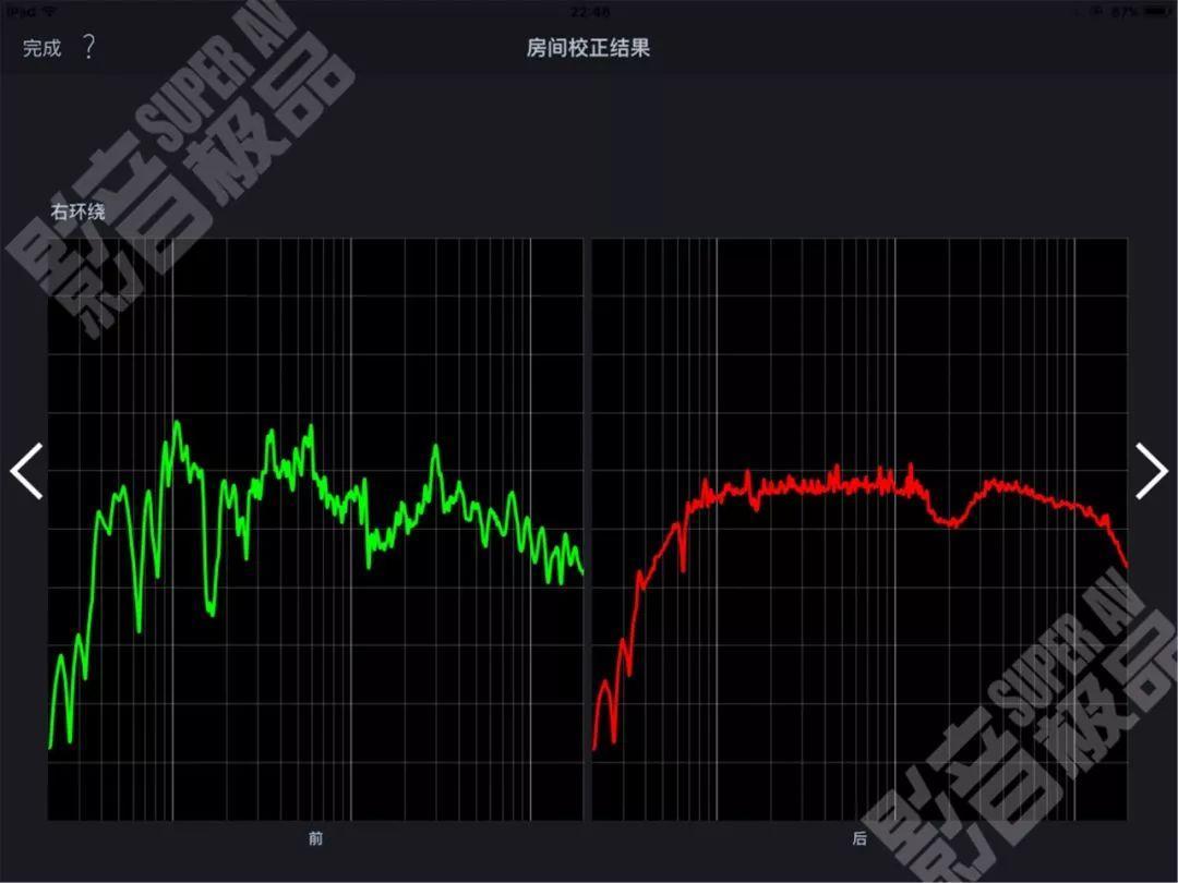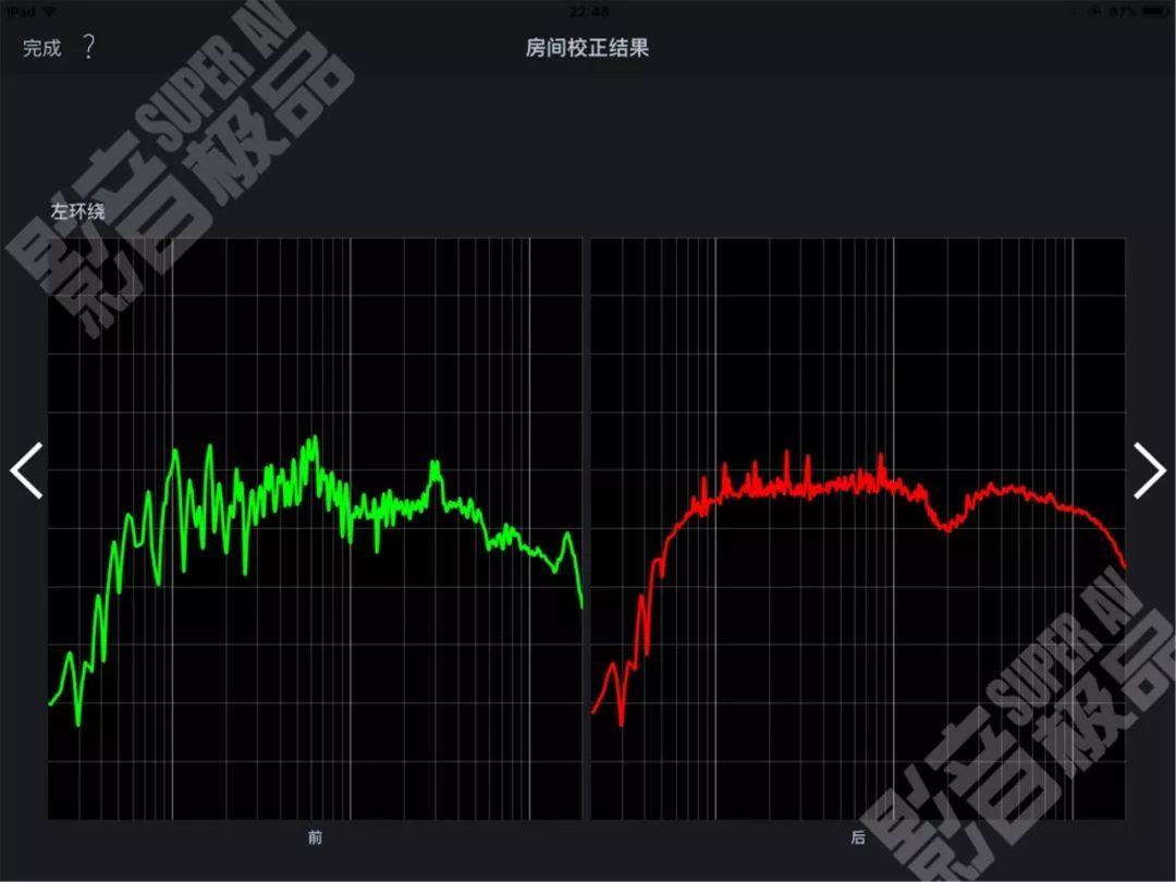 测试双炮的时候,会有Audyssey的Sub EQ HT技术,校正双炮的响度差异和延迟差异,最终保证双炮的步调统一,然后再引入多点EQ修正