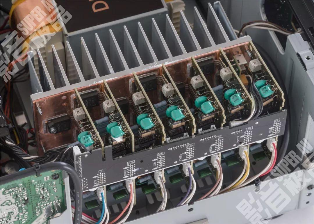 在前級放大電路上,與老款X7200W不同的是,X8500H採用了9塊芯片來把以前X7200W用兩塊芯片負擔的工作分開做好,