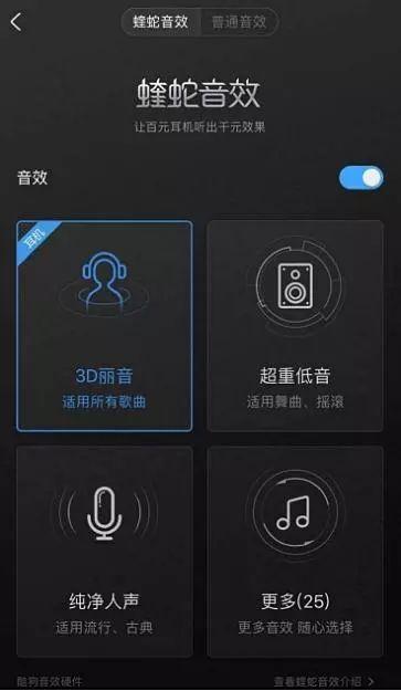 說到這個音效,可能不少人體驗過。在酷狗音樂的軟件上,也附帶了蝰蛇音效。