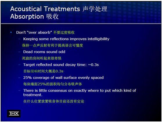 THX作为视听室一个比较科普级的全球规范教材,其实对混响时间是比较宽泛的一个界定,而THX的教材中关于声学的部分却是引于用更为高级和苛刻的美国PMI录播室设计标准。