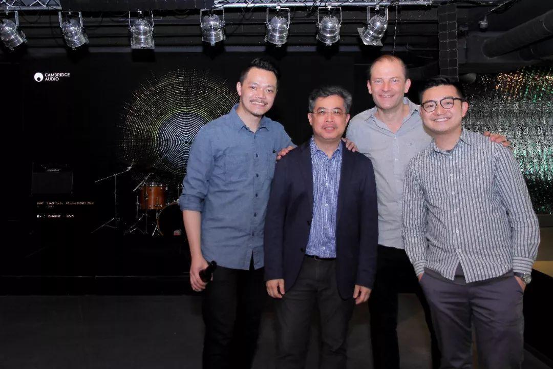 ——左至右:Cambridge Audio亞洲區營銷負責人Calvin Yeung、筆者、Cambridge Audio總裁James Johnson-Flint、劍橋亞洲市場部經理Chris Man