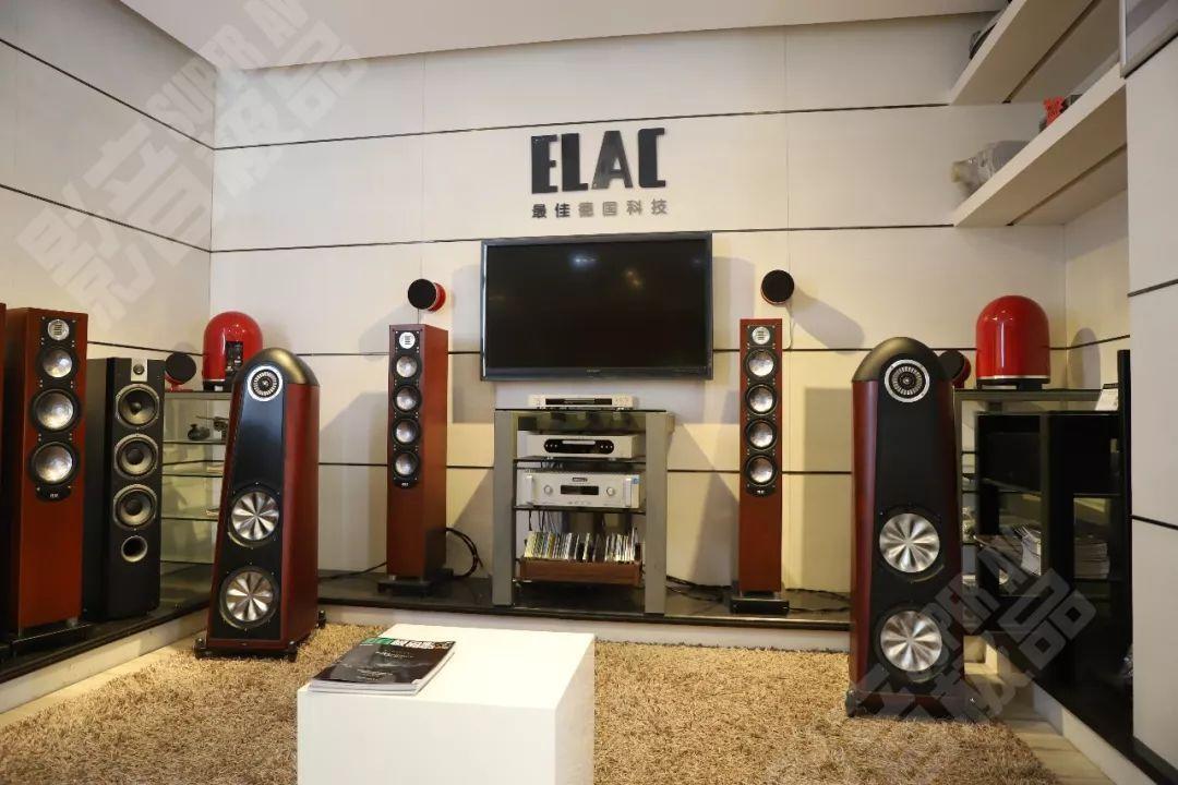 店内的一个半开放式试音区域,展示有多款ELAC的扬声器产品