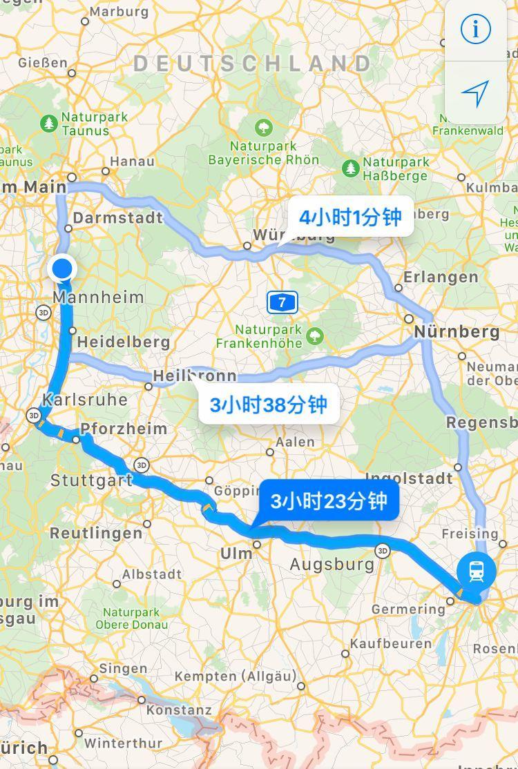 ——從慕尼黑中央車站到Bensheim需要3小時45分火車車程