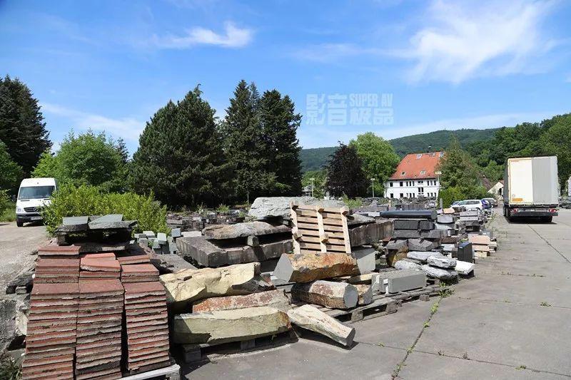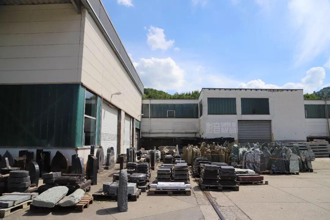 在辦公總部後方有一條小捷徑能去到後方的Avantgarde Acoustic工廠,但當走出去後,發現這裡是一個「大曬場」,全都是帶有標籤且經過加工的石材,待運往世界各地。